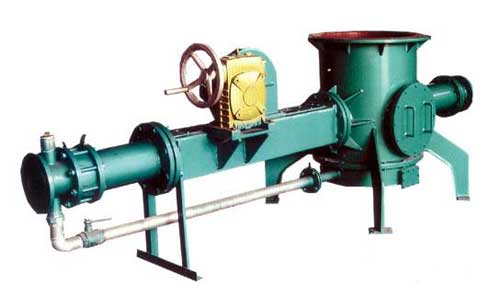 料封泵正常工作時(shí)保持一定的料位高度,當(dāng)短時(shí)間內(nèi)電收塵下料量增大而料封泵仍正常工作則料位高度自然升高,隨著料位高度的提高料壓增大勢能增加輸送量相應(yīng)就大直到系統(tǒng)自動平衡,當(dāng)短時(shí)間內(nèi)電收塵下料量減少而料封泵仍正常工作則料位高度自然降低,隨著料位高度的降低、料減少勢能降低、輸送量相應(yīng)就小,直到系統(tǒng)自動平衡。